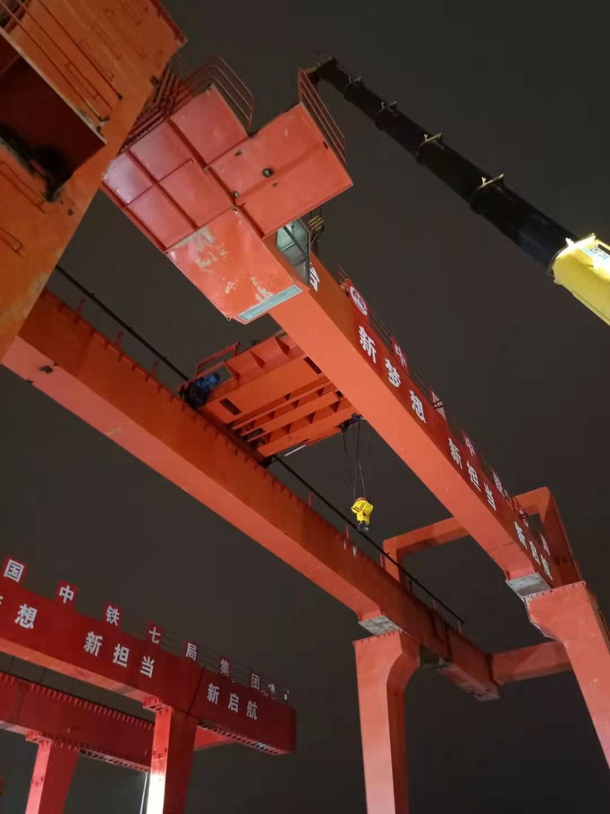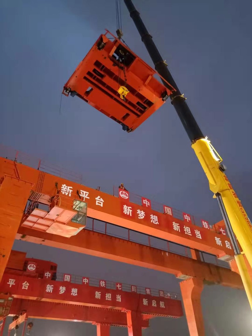 好消息!我公司专业安拆服务队伍在郑州7号线对第二台45吨双主梁门式起重机进行安装作业。在完成场地清理、安全教育、技术交底等各项准备工作 ,在工作人员的相互配合下,安装工作圆满完成!接下来还有两台设备等待安装!